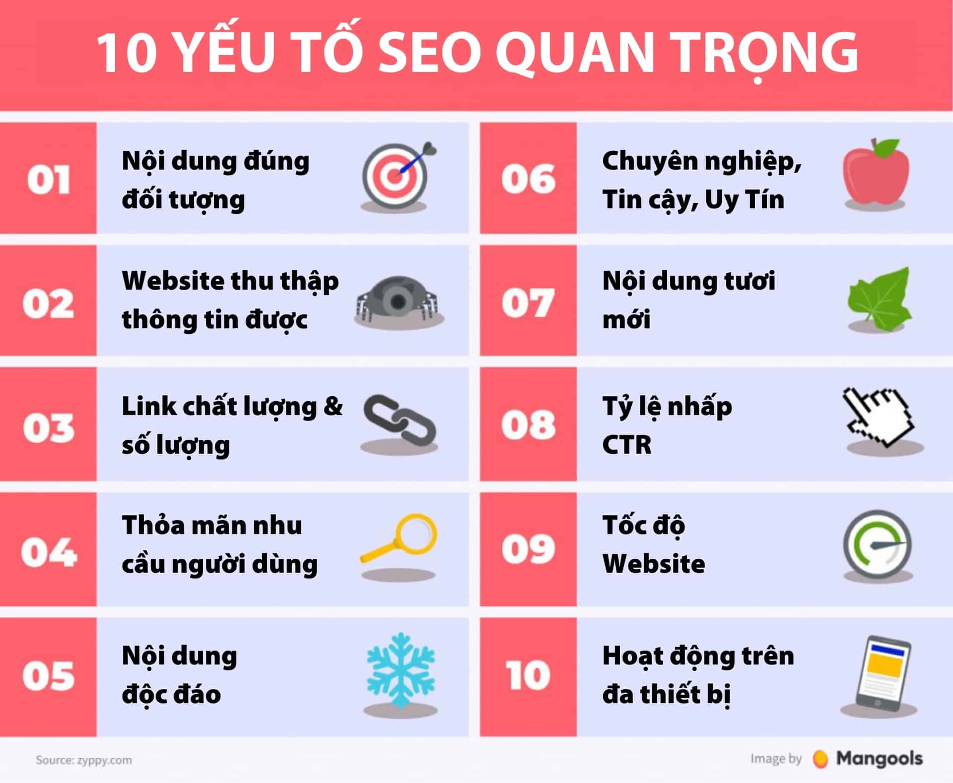 Hầu hết các yếu tố dưới đây đều được chứng minh, nhưng một số chỉ là suy đoán hoặc thậm chí là hoang đường. Trên hết, sẽ có vài yếu tố quan trọng hơn những yếu tố khác. Bạn không cần phải biết tất cả các yếu tố xếp hạng để học SEO, nhưng ít nhất bạn nên có một cái nhìn tổng quan về các yếu tố cơ bản.